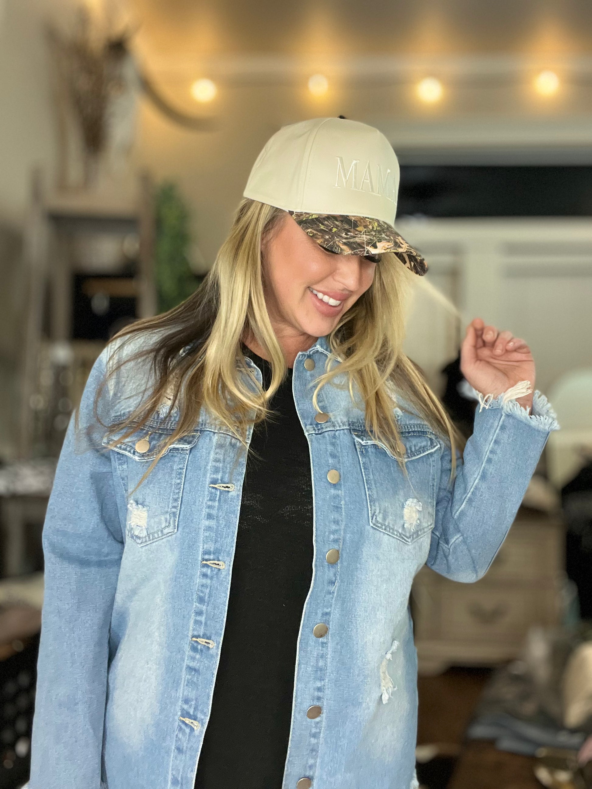 DISTRESSED DENIM SHIRT STYLE JACKET