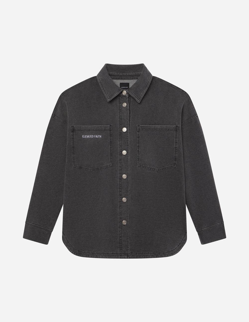 Introducing our new shacket, a cozy combo of comfort and style. Featuring oversized patch pockets, a curved hem, and embroidery details, this layer will fit perfectly into your current wardrobe. In stretchy, distressed french terry, the shacket is as soft as your favorite EF hoodie - in a fresh, relaxed silhouette.