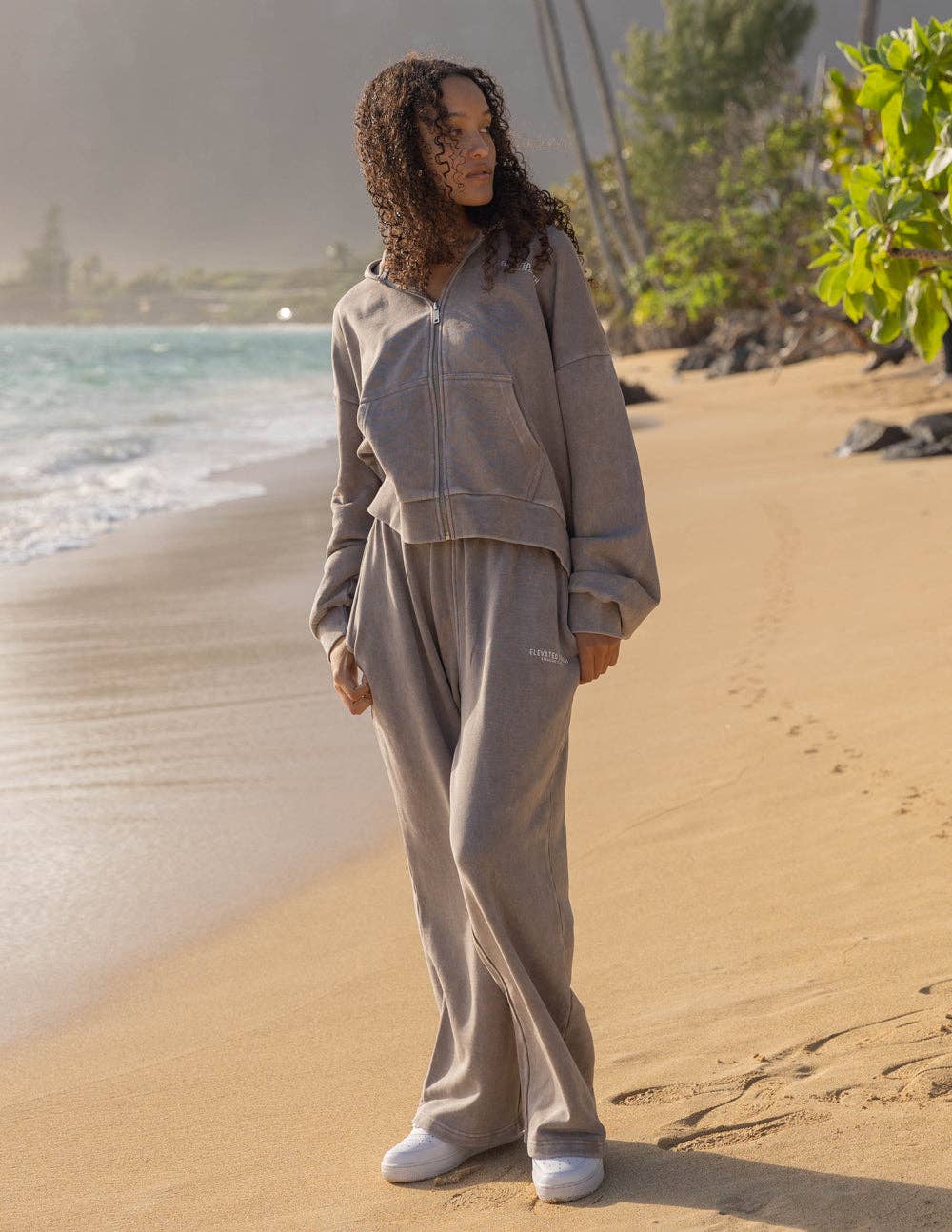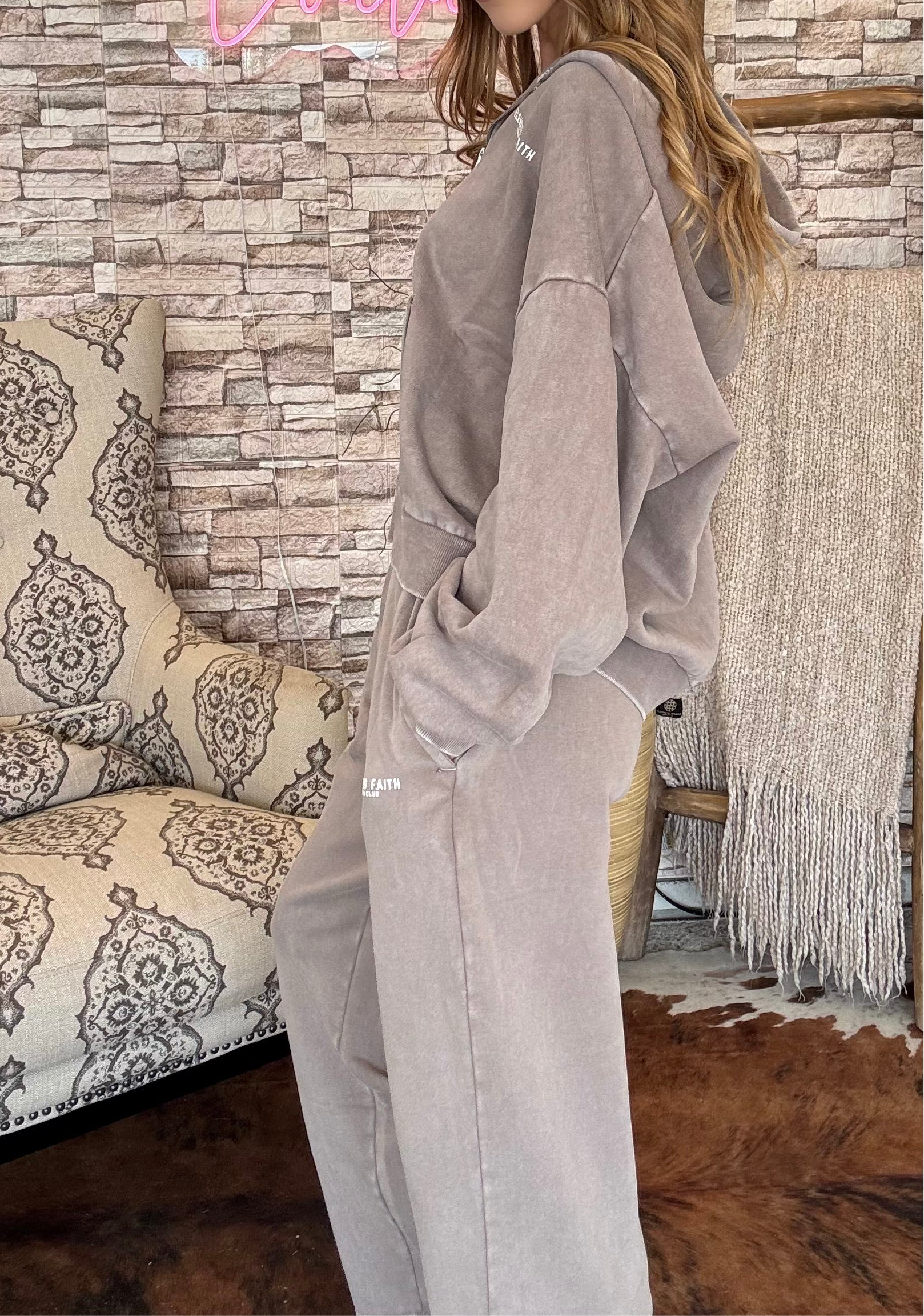 Flow in our Elevated Faith wide leg sweatpants, where comfort meets intention. The generous, oversized cut and premium 100% cotton fabric create an effortless drape that flatters every movement. These pants blend loungewear luxury with everyday versatility, perfect for both peaceful moments at home and casual outings. "I press on toward the goal to win the prize for which God has called me heavenward in Christ Jesus." -Philippians 3:14 Size: Model is 5'6" and wearing a size Small. Fit: Oversized, Unisex Fit Color: Moon Rock Composition: 100% Cotton Features: Garment Dyed, Super Soft, Hidden Drawcord