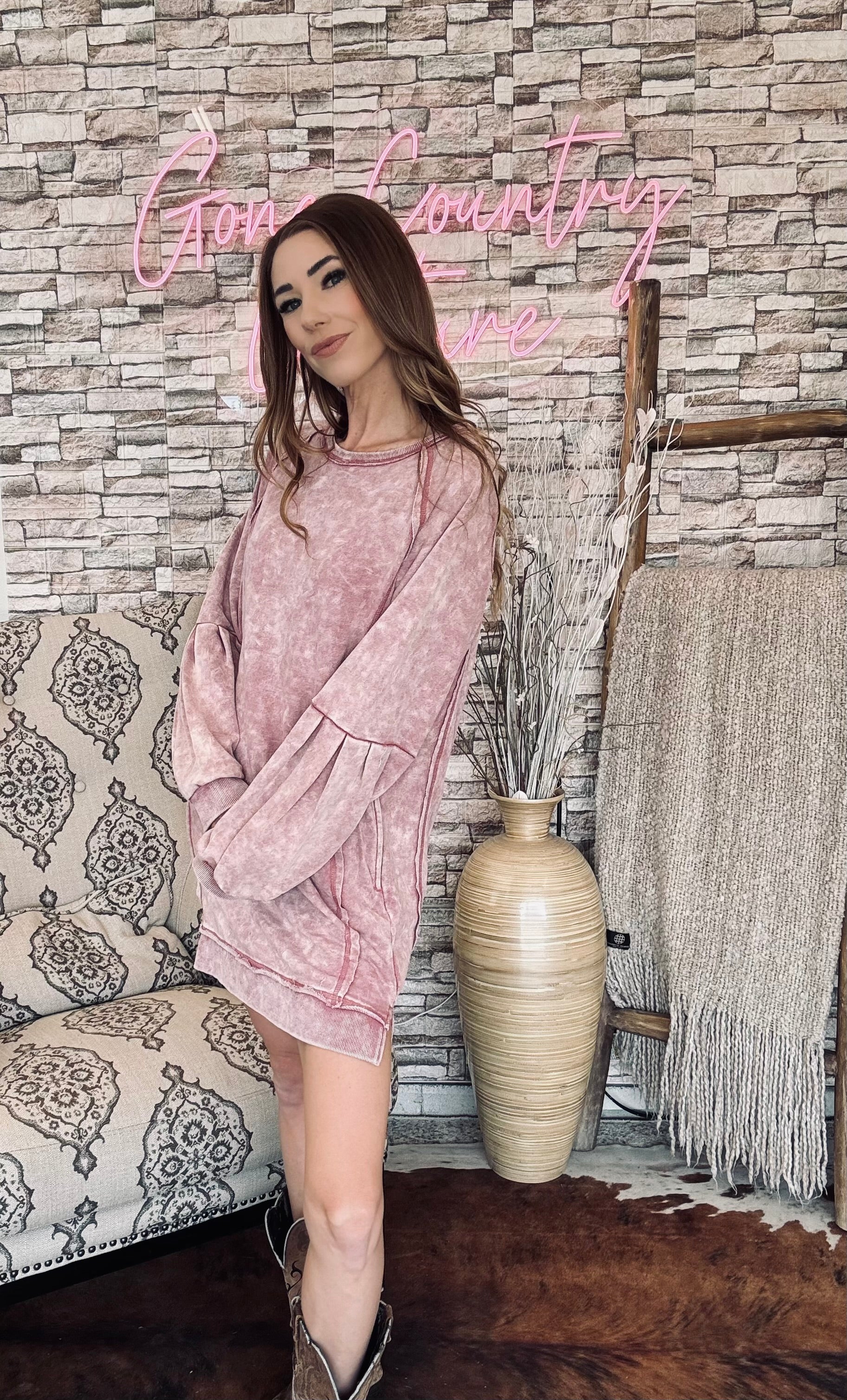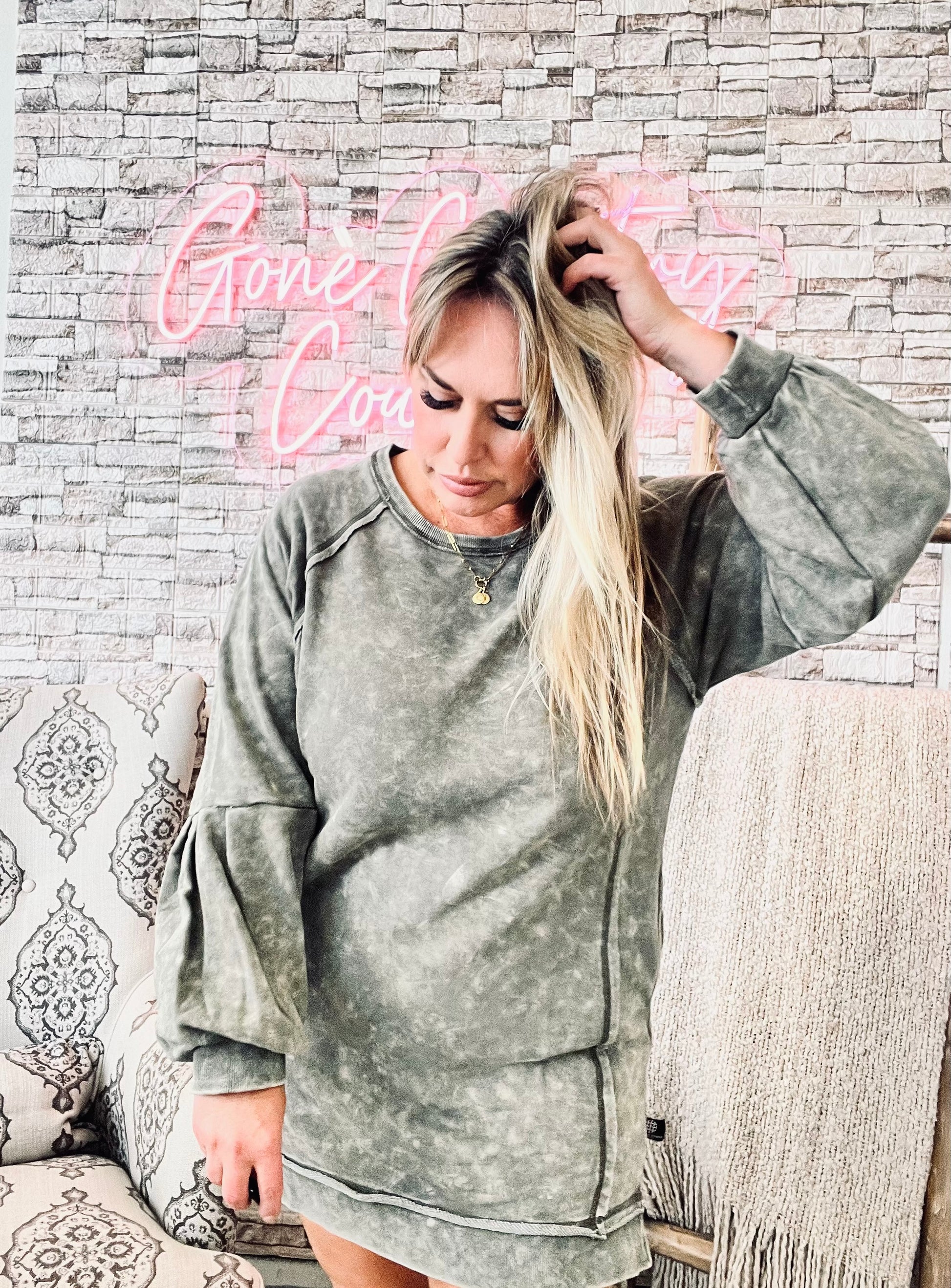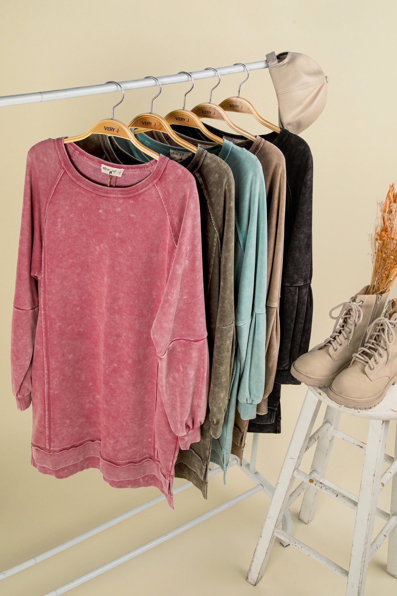 Mineral Washed Raglan Sleeve Casual Mini Dress