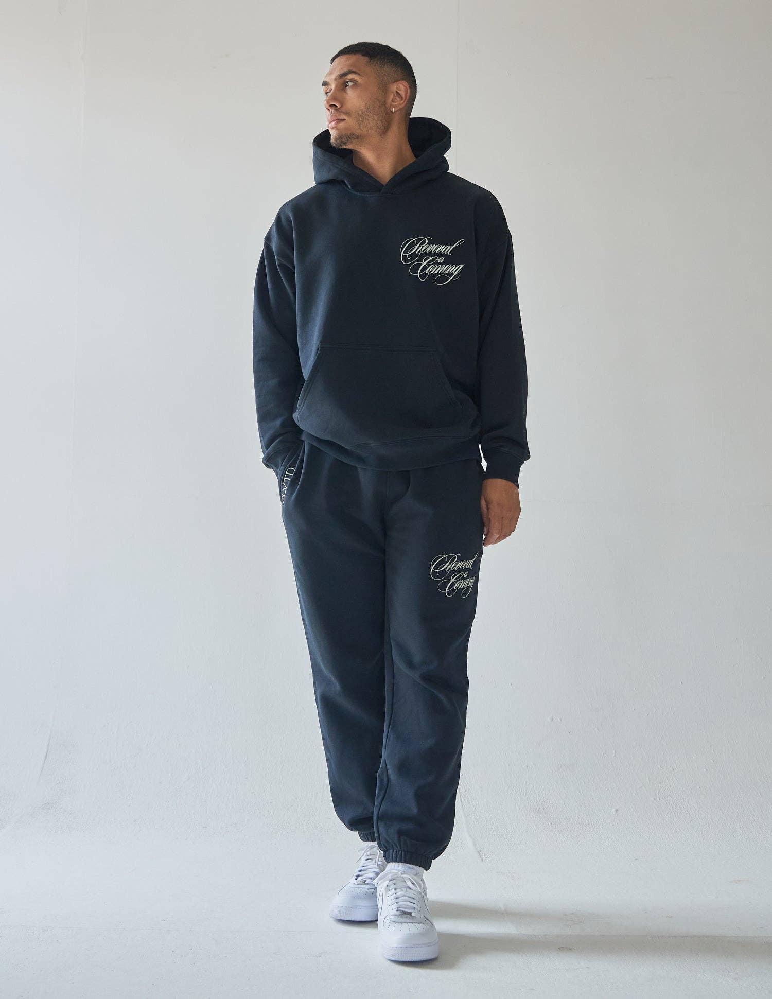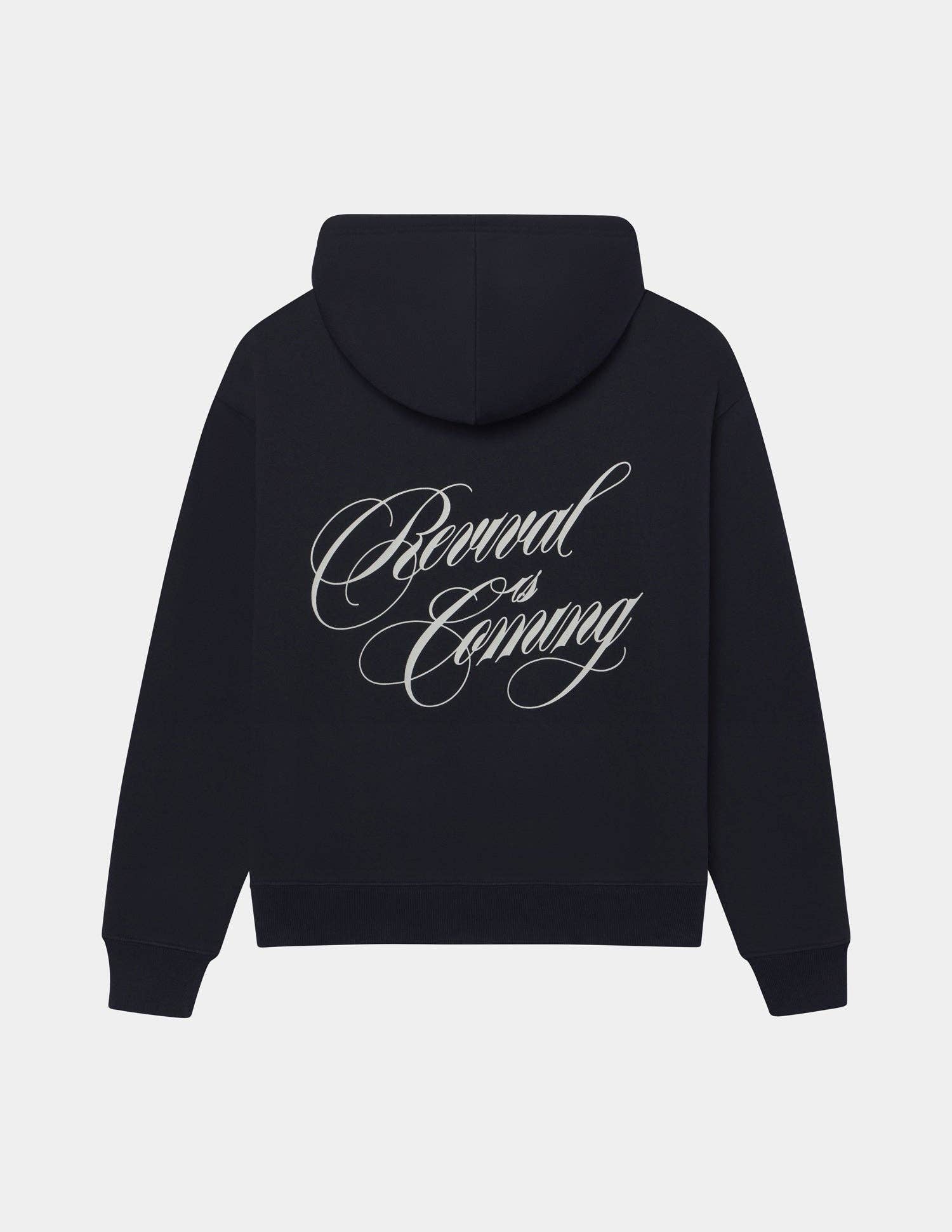 Our Revival Hoodie in nightfall. 100% premium combed cotton. 420gsm. Revival print on front, oversized print on back.