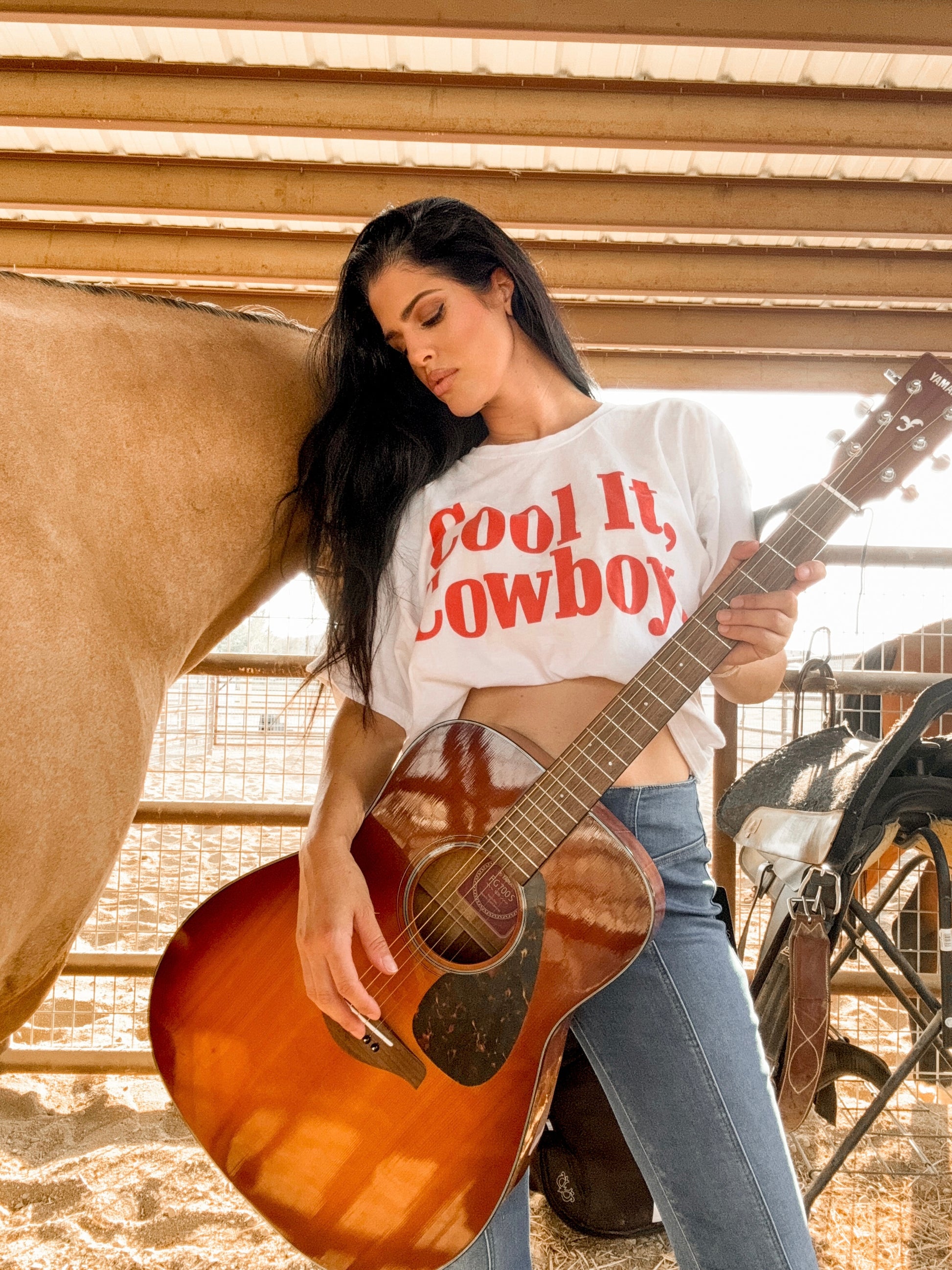 Embrace laid-back style with the Cool It Cowboy graphic boxy crop t-shirt. Crafted from soft cotton, this oversized crop top offers breathable comfort and a relaxed fit perfect for warm days or layering. Its bold graphic print adds a touch of attitude to any outfit, making it an easy go-to for casual looks that stand out. Whether paired with high-waisted jeans or shorts, this versatile tee delivers effortless cool with every wear.